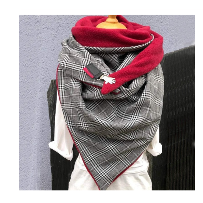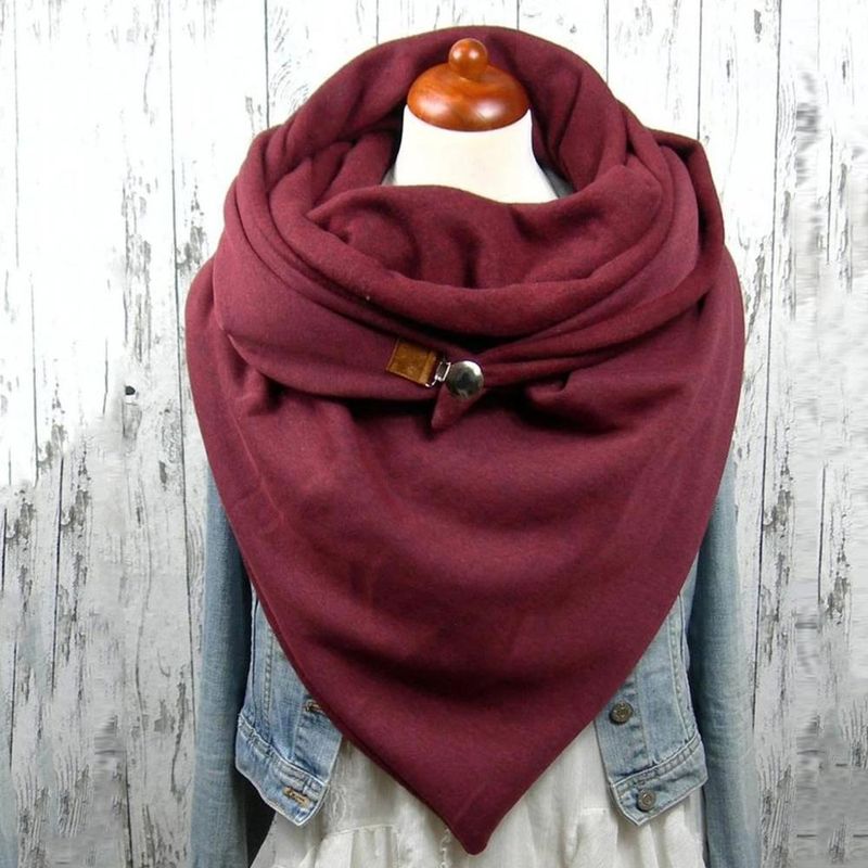 Fashionable Women's Solid Stitch Print Button Wrapped Soft Casual Warm Scarf Shawl