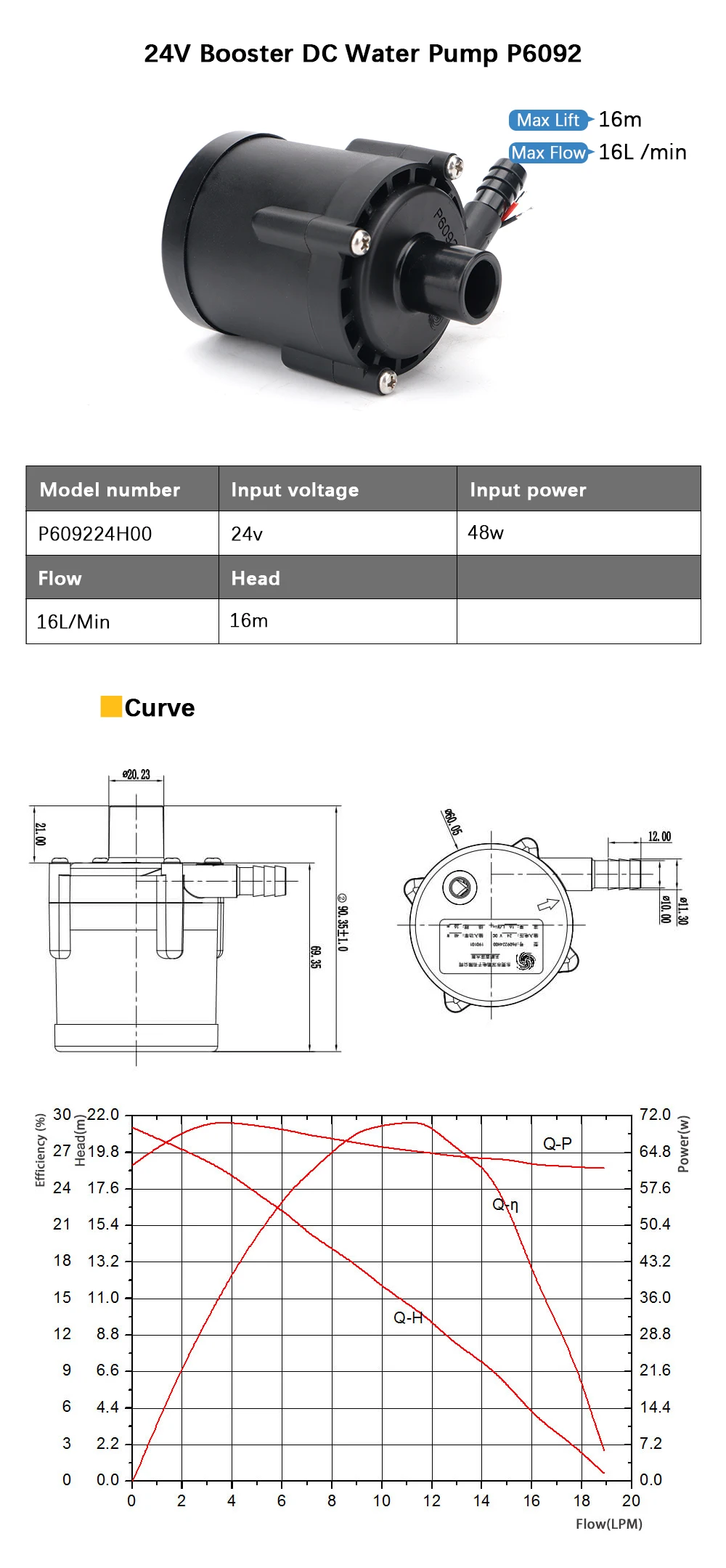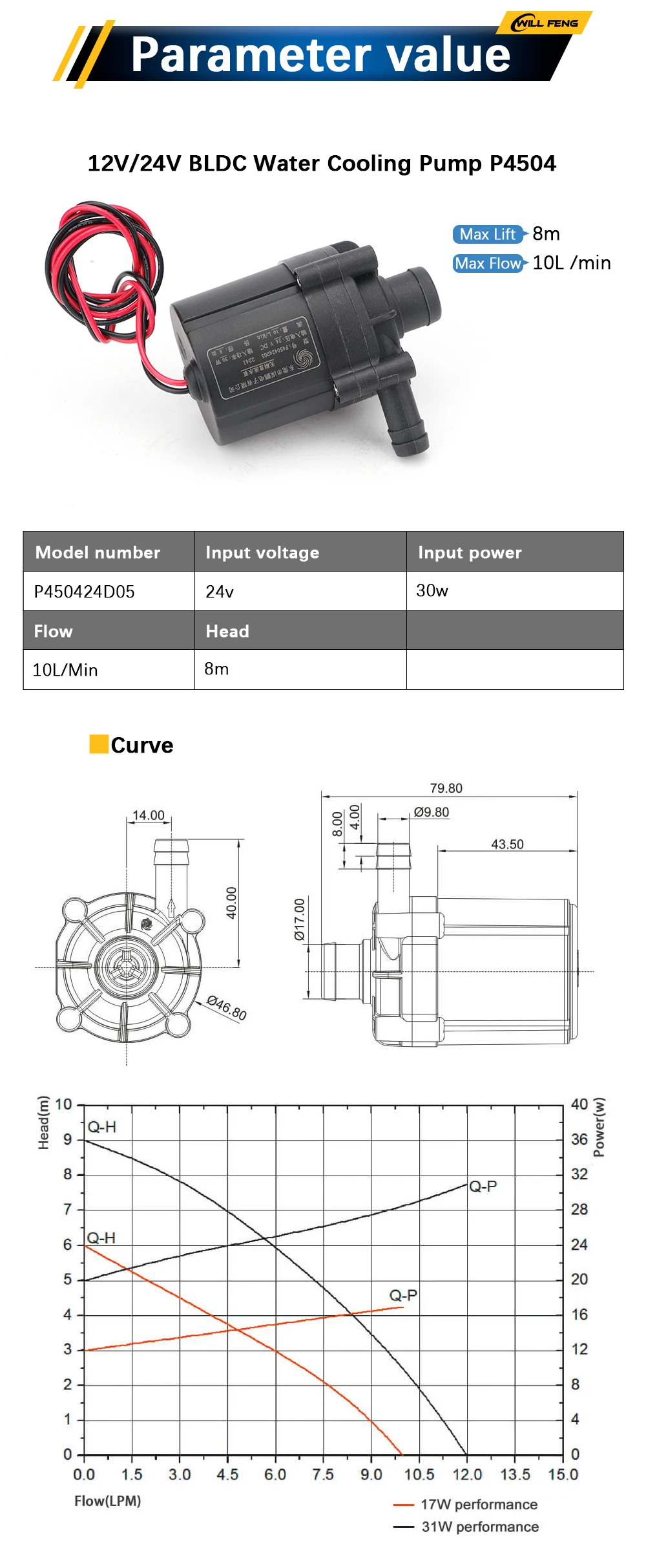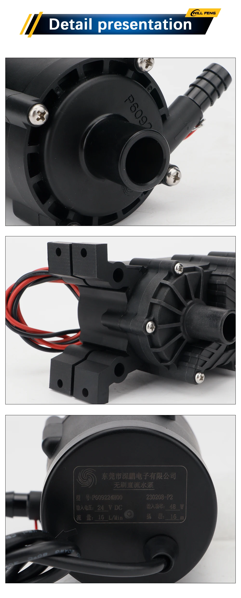 Will Feng Water Pump P4504 30W/24V 10L/Min P6092 48W/24V 16L/Min for S&A Industrial Chiller CW-3000 CW-5000 CW-5200