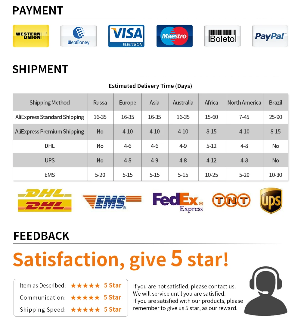 We accept the following payment options: