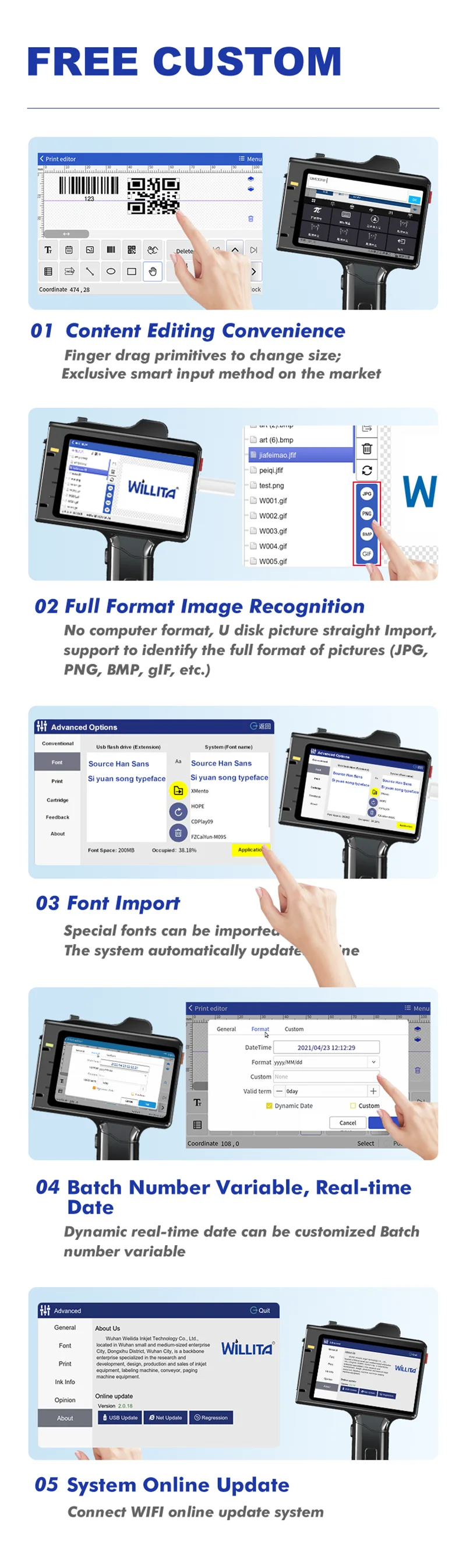 ★ Intelligent: Support variable text, logo, batch number, QR code, etc. Support full format picture, support table insert.