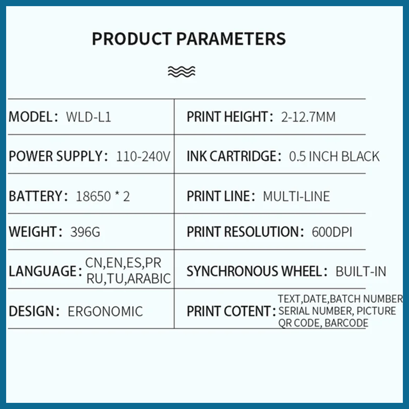 ☞ Printing resolution is 600dpi, multiple lines and 2-12.7mm height adjustable.