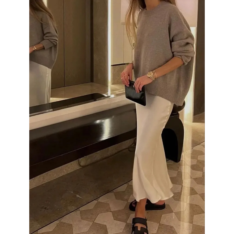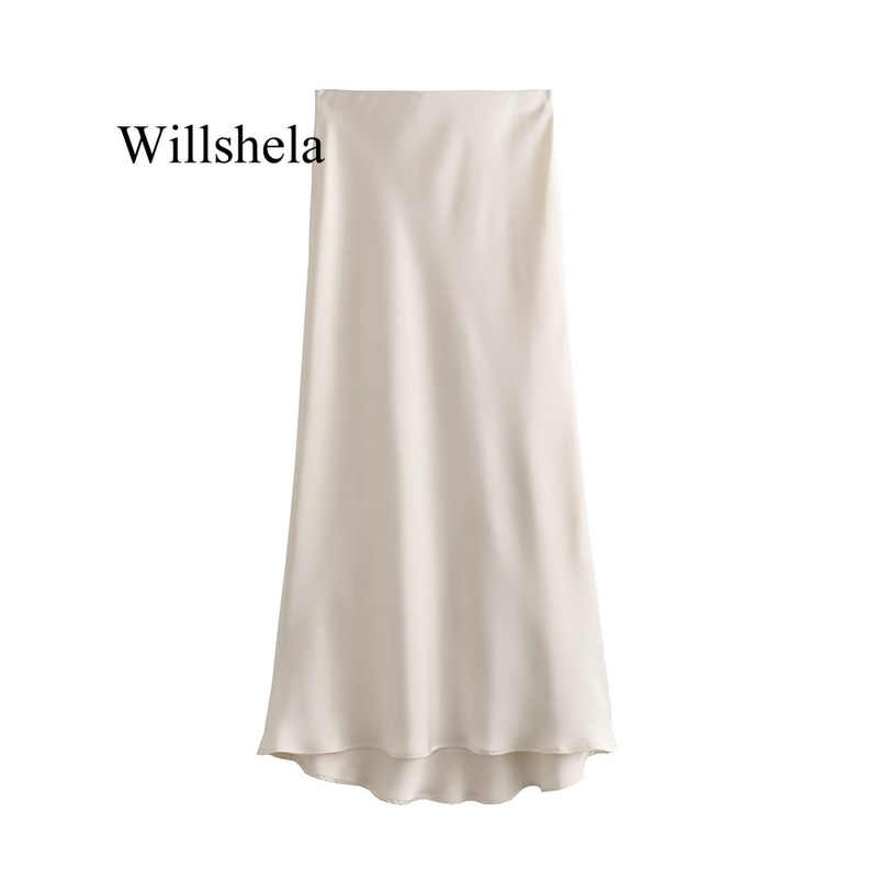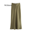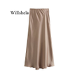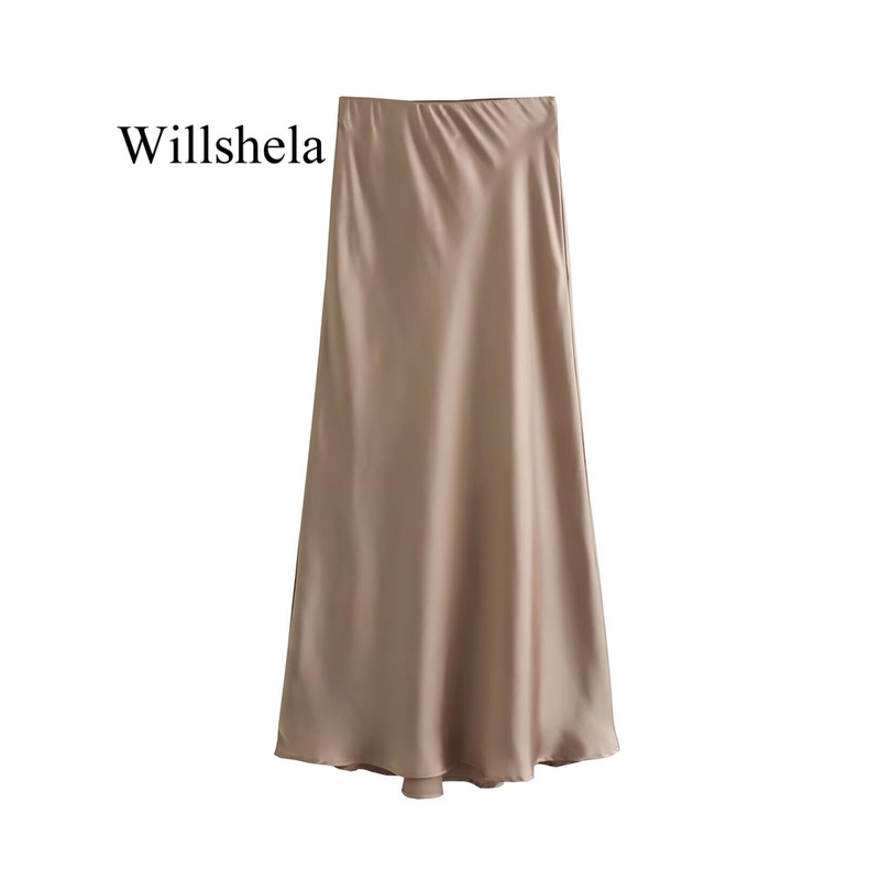 Willshela 2024 Black Satin Skirt Woman High Waist Elegant Long Skirts For Women Fashion Summer Midi Skirt Office Women's Skirts