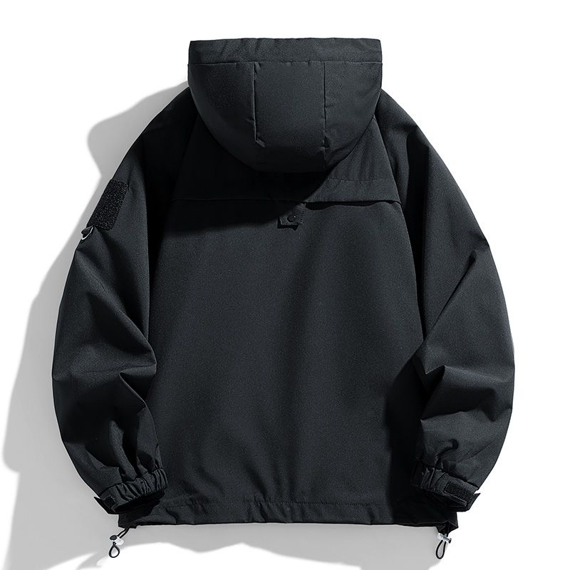 Windbreakers Men Hooded Jacket Zipper Coat Cargo Waterproof Black Bomber Camping Loose Thin Softshell Hooded Hiking Jacket