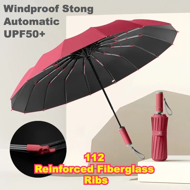 Windproof Automatic Umbrella 112 Reinforced Fiberglass Ribs, Stormproof UV 50+ for Men Women, Compact Folding Sun Rain Umbrellas