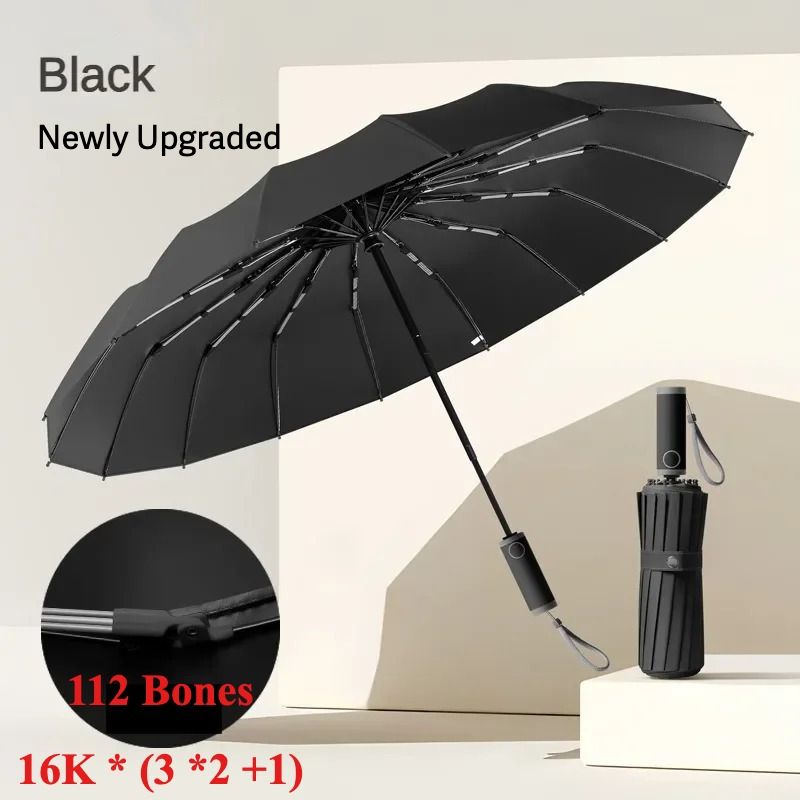 Windproof Automatic Umbrella 112 Reinforced Fiberglass Ribs, Stormproof UV 50+ for Men Women, Compact Folding Sun Rain Umbrellas