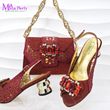 Wine Color New Arrivals 2024 Italian Design Shoes and Bag Set Mid Heels Comfortable with Shinning Crystal for Wedding