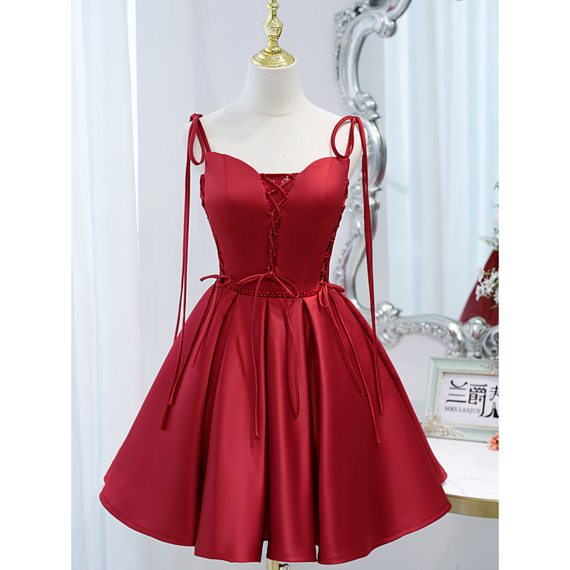 Wine Red Satin Lady's Slimming Annual Meeting Light Luxury Dress Wine Red M