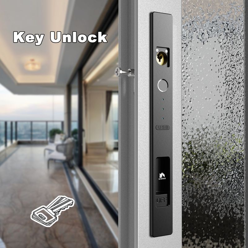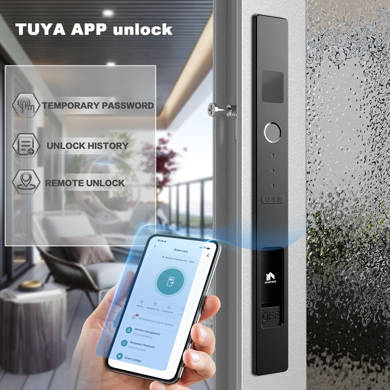 WINFREE Sliding Door Smart Lock Fingerprint Lock Tuya Bluetooth Security Protection Wooden Door for Garden Patio Balcony