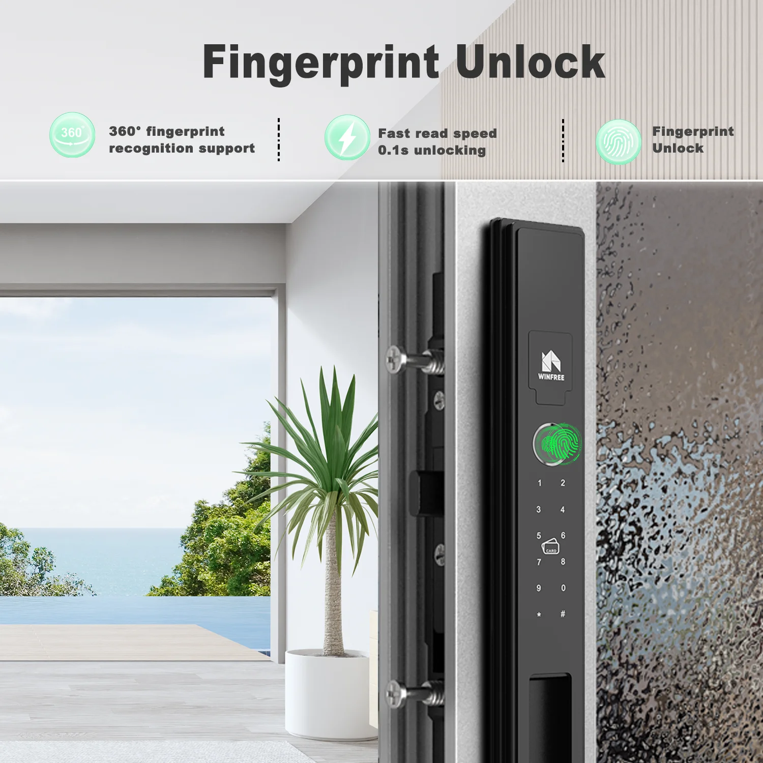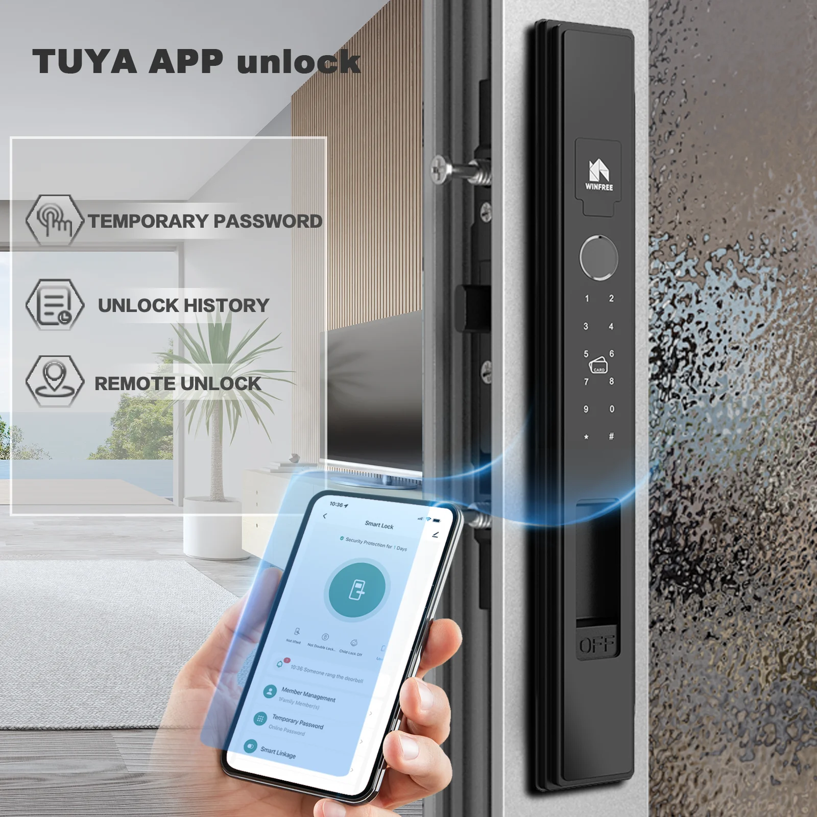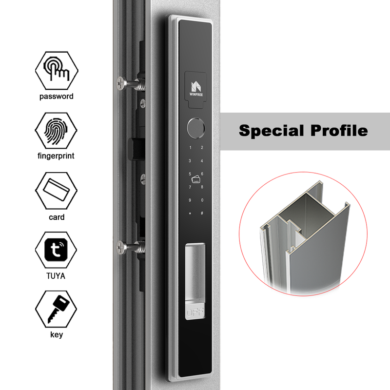 WINFREE Tuya Bluetooth Smart Lock Special Aluminium Profile Sliding Door Passcode Fingerprint Smart Card Door Lock