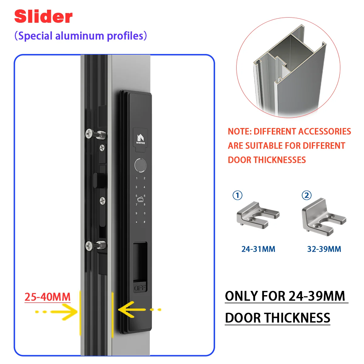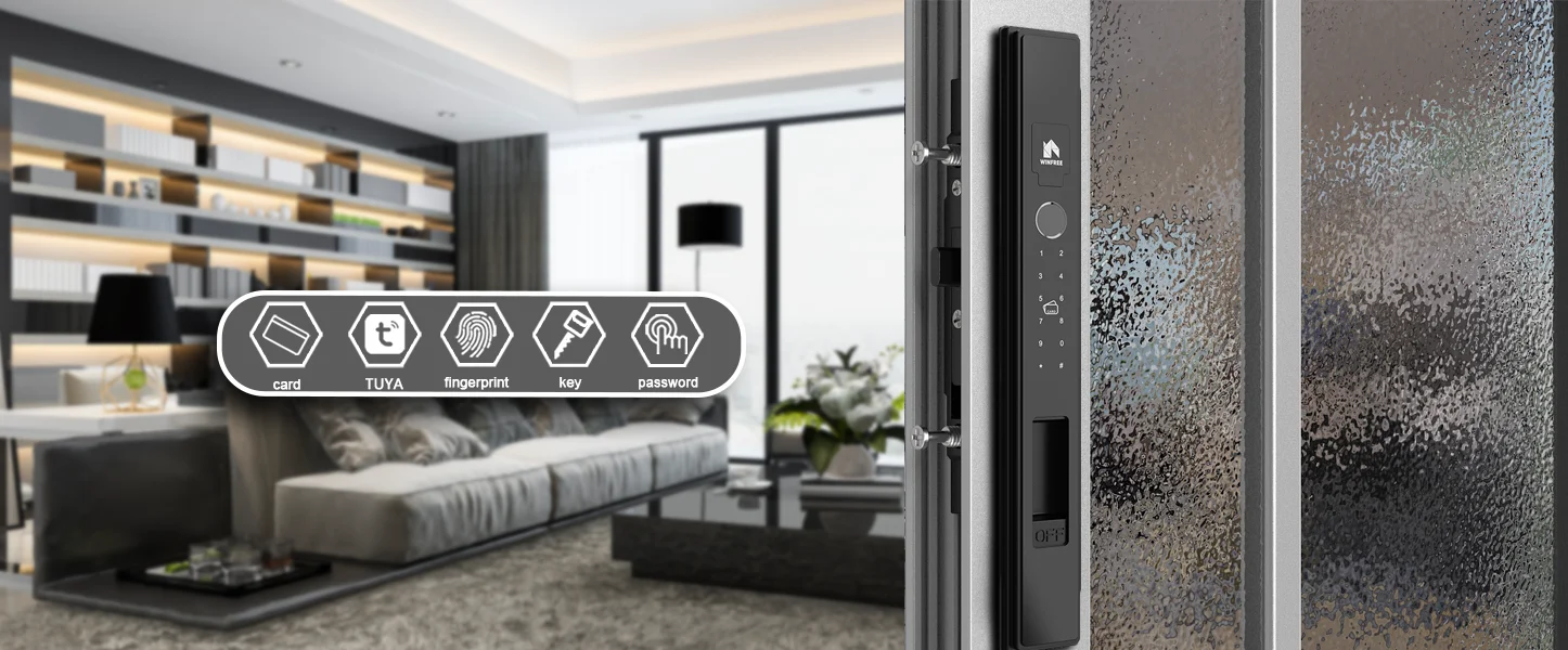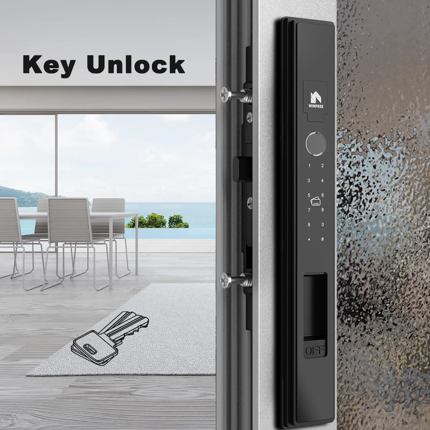WINFREE Tuya Bluetooth Smart Lock Special Aluminium Profile Sliding Door Passcode Fingerprint Smart Card Door Lock