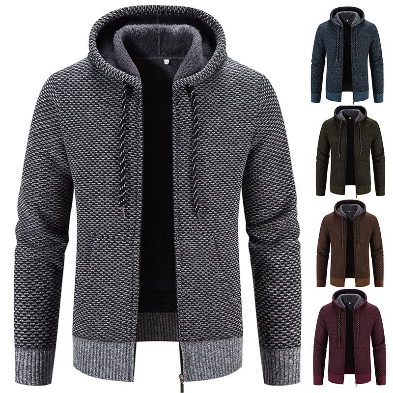 Winter Coat Zipper Closure Solid Color Long Sleeves Drawstring With Hat Keep Warm Casual Thicken Plush Sweater Coat For Daily Light Gray XL