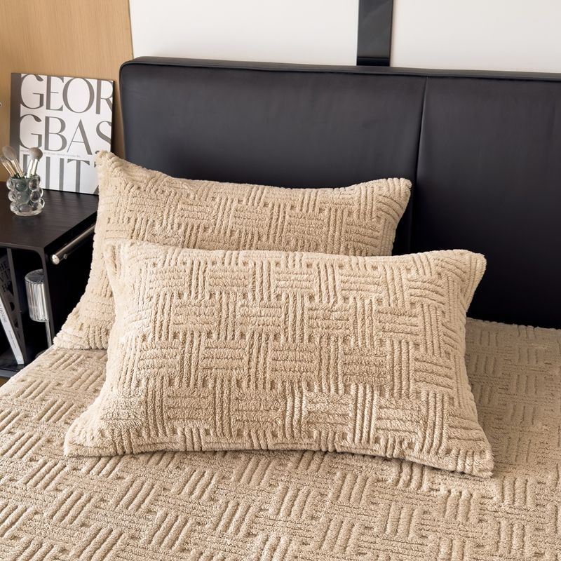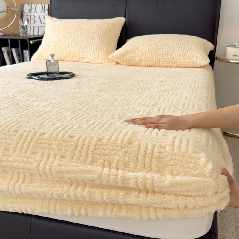 Winter Embossed Plush Fitted Sheet Soft Warm Coral Velvet Mattress Protector Cover Queen Size Deep Pocket Elastic Bed Sheet Set