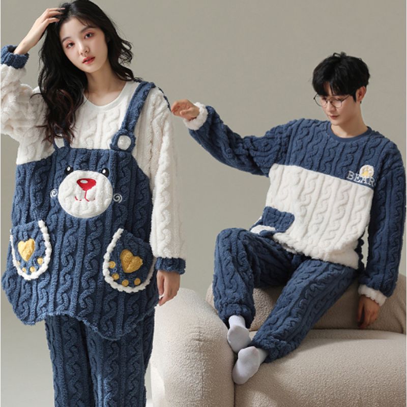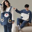 Winter Flannel Pyjamas Female Couple Thermal Cover Cute Student Men's Casual Cartoon Homewear Set Velvet Blue Male L