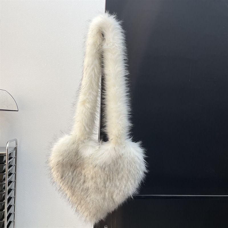 Winter Fleece Shoulder Bags Women Heart Shape Crossbody Bag Plush Large Capacity Love Bag White