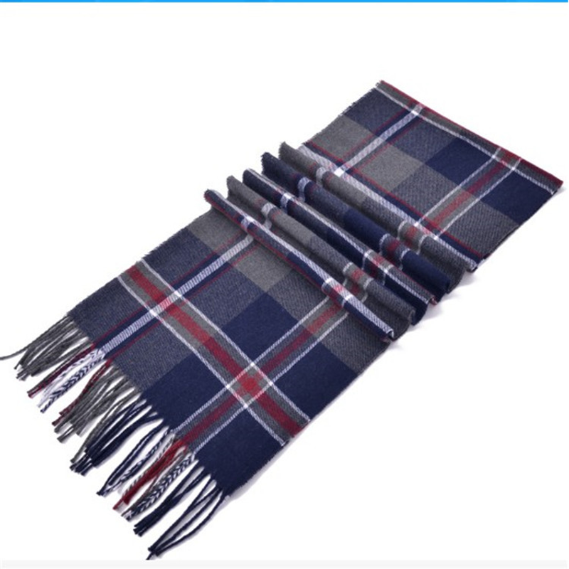 Winter Korean Style Student Versatile Trendy Young Men's Scarf Navy Blue Bold Stripes 195x35cm