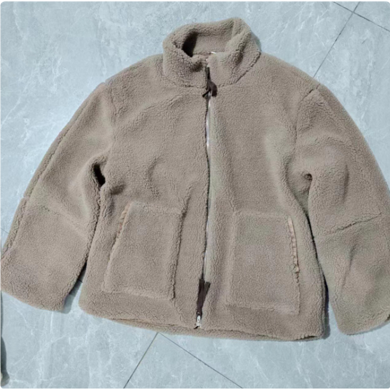Winter Lapel Zip-up Coat With Pockets Casual Fashion Solid Fleece Jacket Fall Spring Long Sleeve Women's Clothing Black L