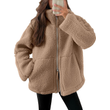 Winter Lapel Zip-up Coat With Pockets Casual Fashion Solid Fleece Jacket Fall Spring Long Sleeve Women's Clothing Gray L