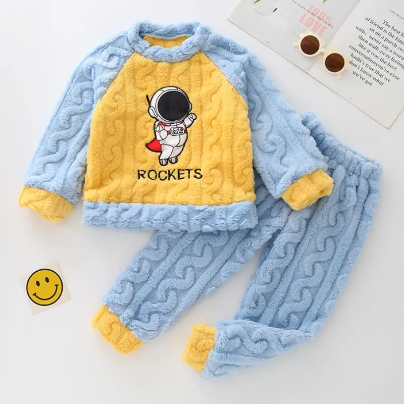 Winter Marvel Children Clothing Boys Sleepwear Set Flannel Thick Long Sleeve Warm Set Pajamas Two Pieces Kids Clothes