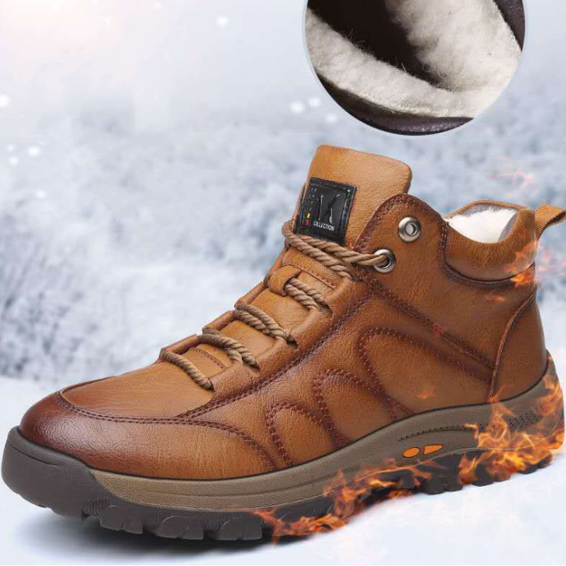Winter Men's Cotton Shoes Wool Sports Leather Shoes Brown 43