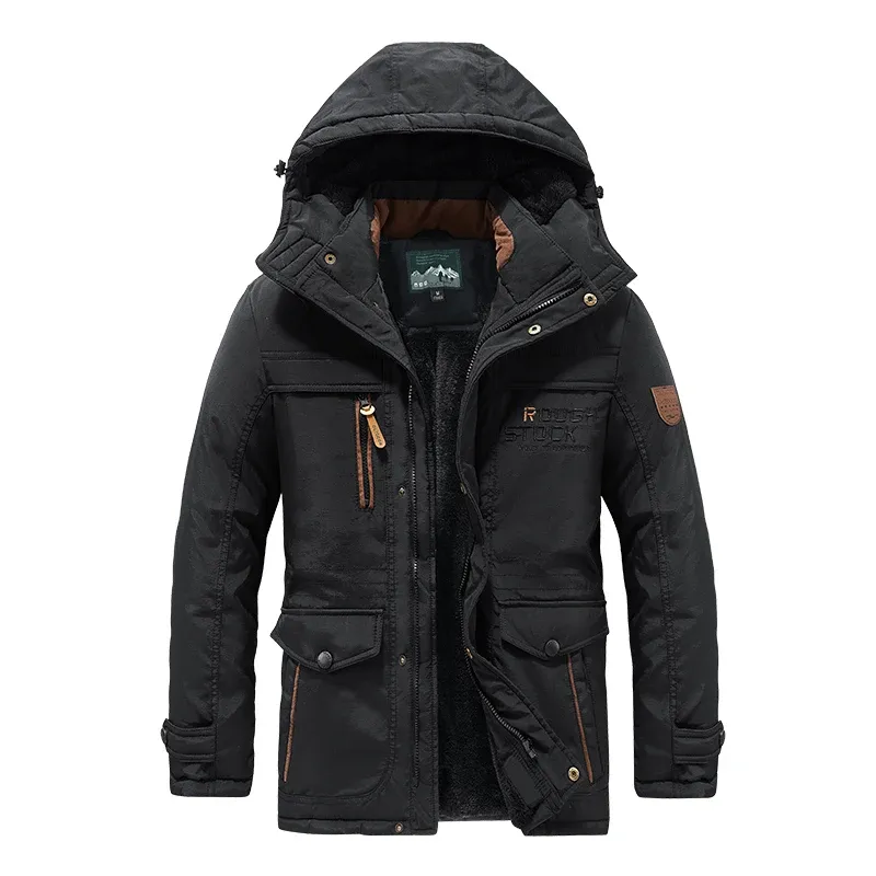 Winter Men's Parkas Cotton-padded Jacket Men Extra Warmth Extra Fat Medium Long Multi-pocket Cotton-padded Jacket Winter Coats