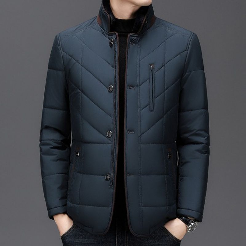 Winter Men's Short Coat Cold-proof High-end Cotton-padded Coat Men Dark Blue 2XL