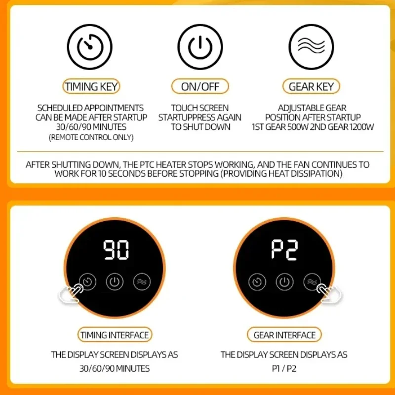 Winter Portable Heater Home 1200W High Power with LCD Touch Screen Fast Heater Remote Smart Remote Control 3-speed Timed Heater