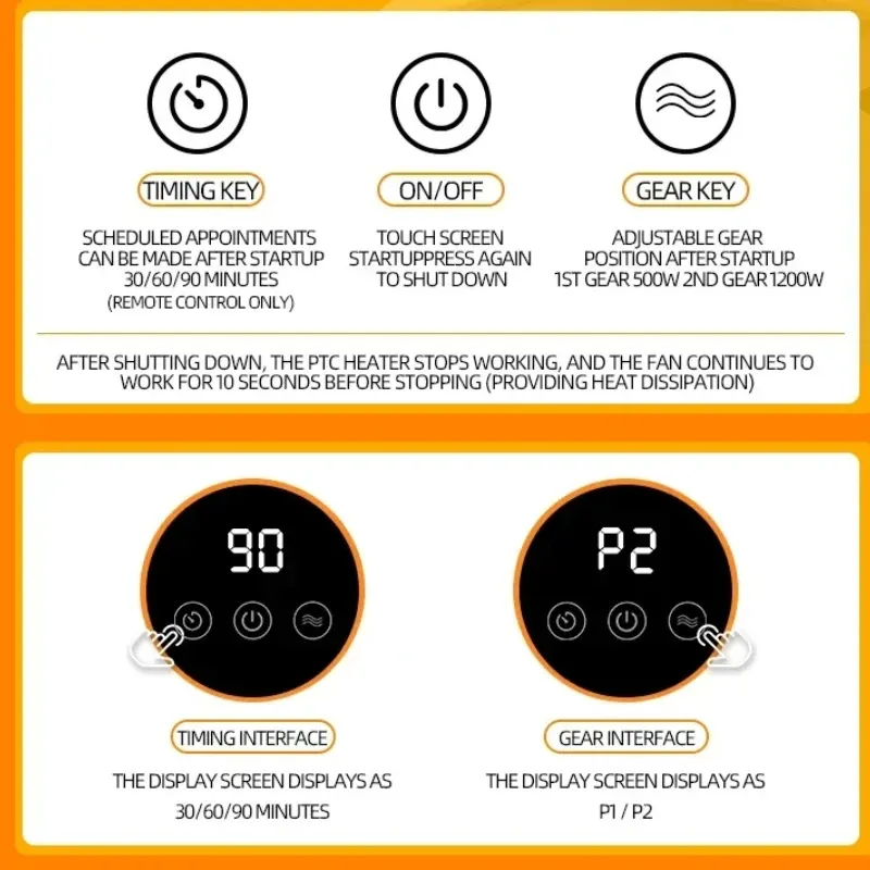 1. Simple and elegant touch screen, full of technology. Remote control is more convenient, and the temperature can be easily adjusted without moving. Wide-angle air supply, uniform hot air circulation throughout the room.