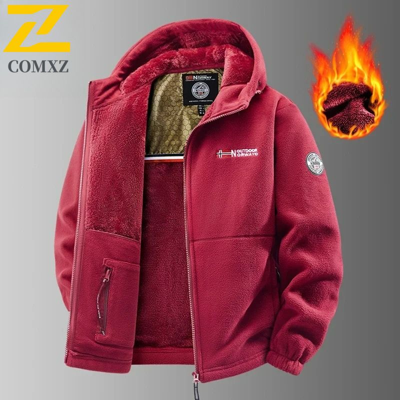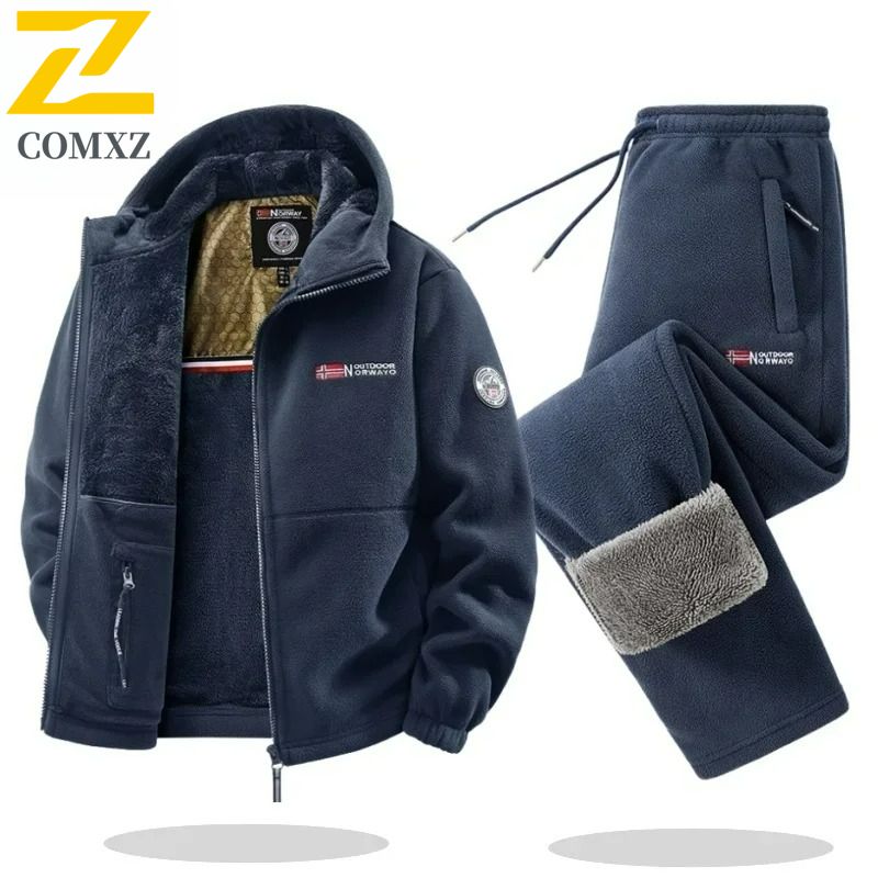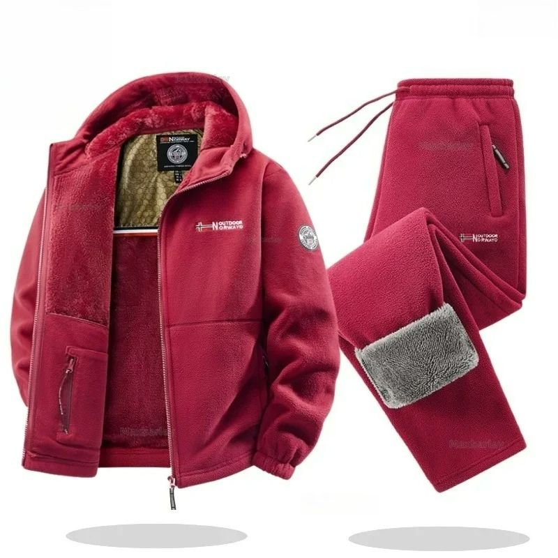 Winter Sherpa Fleece Jacket Pants Set Unisex Outdoor Sporty Couple Hoodie British Norwegian Style Fishing Camping Warm Clothing
