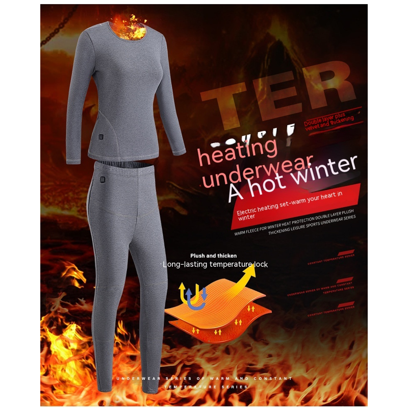 Winter Thermal Electric Heating Suit Smart Heating Underwear Whole Body Fever Thermal Suit Can Be Worn Outside Grey women's pants XXL