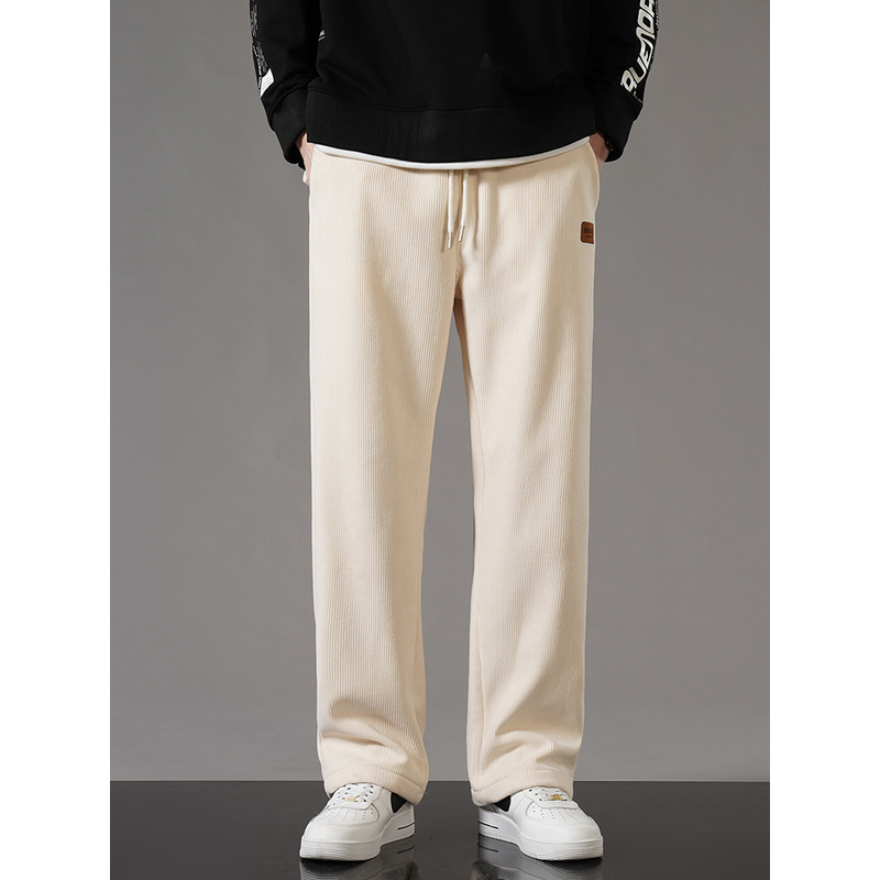 Winter Thick Warm Corduroy Sweatpants Men Fleece Liner Drawstring Straight Loose Track Pants Male Casual Fleece Thermal Trousers