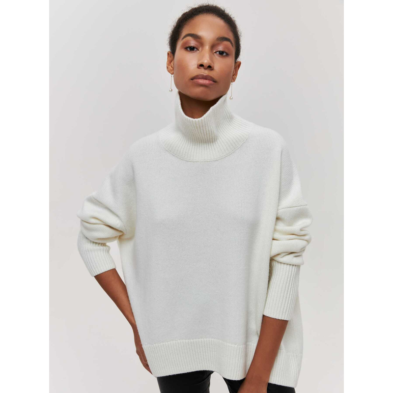 Winter Turtleneck Sweater Ins Solid Color Long Sleeve Pullover Top Women's Clothing Light Khaki S