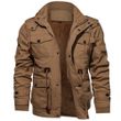 Winter Zip-up Coat Warm Thickened Detachable Hooded Jacket Multi-pocket Button Drawstring Long Sleeve Tops Men's Cargo Clothing Army Green 2XL