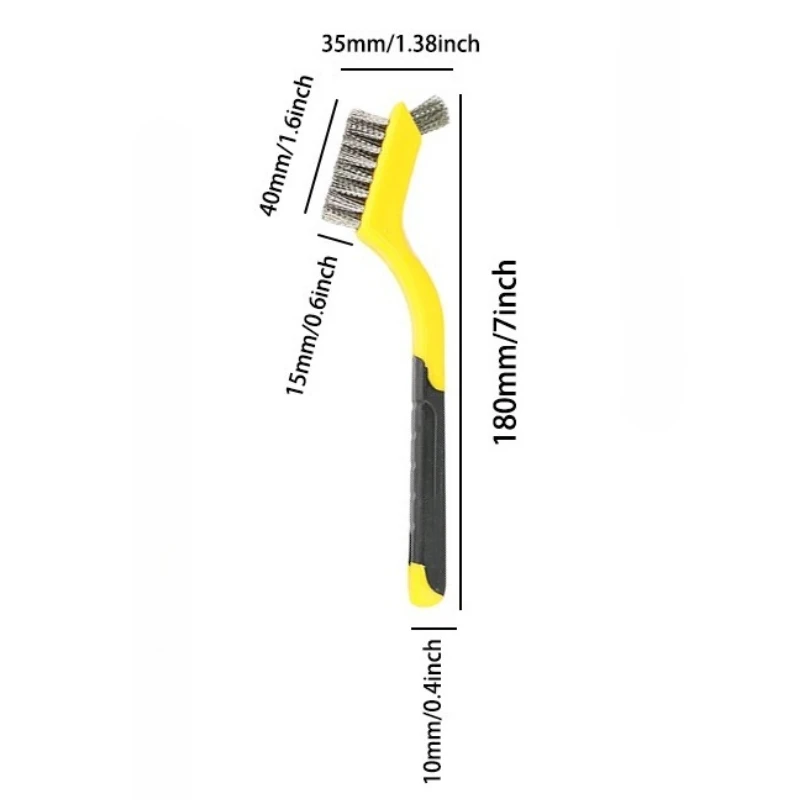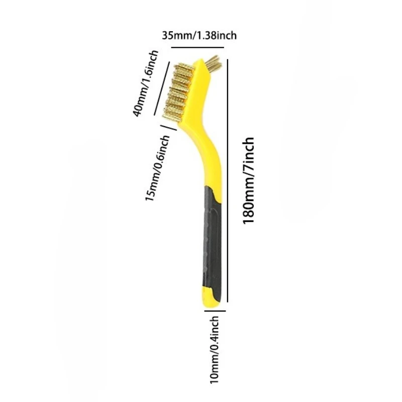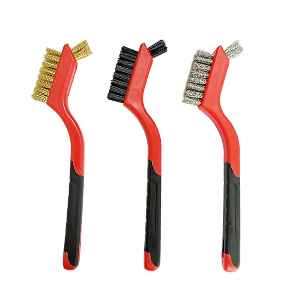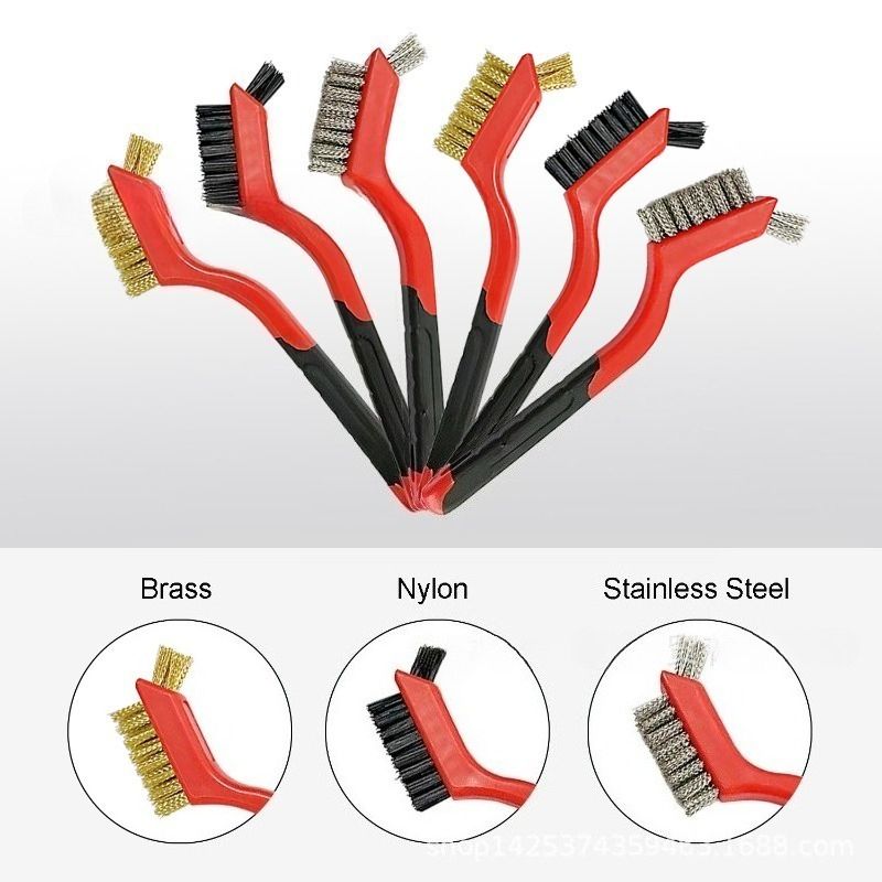 Wire Brush Set Nylon/Brass/Stainless Steel Bristles with Curved Handle Grip for Rust, Dirt & Paint Scrubbing Deep Cleaning