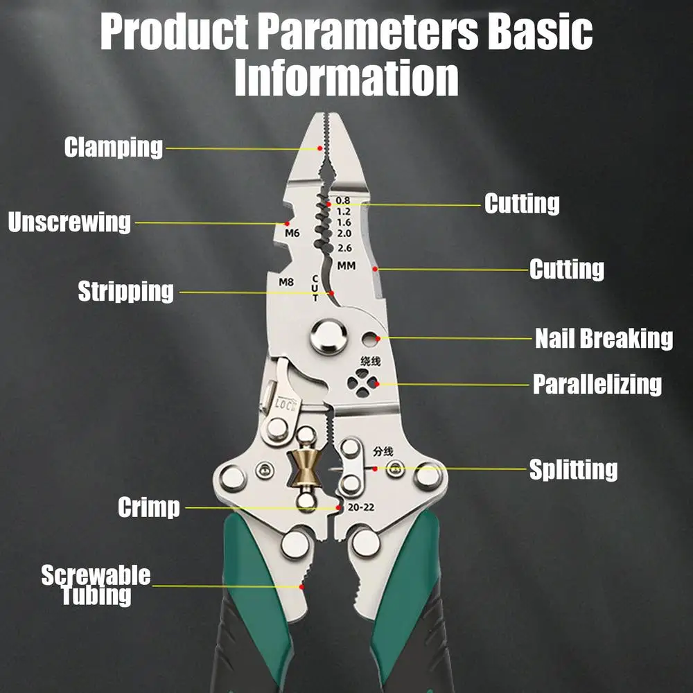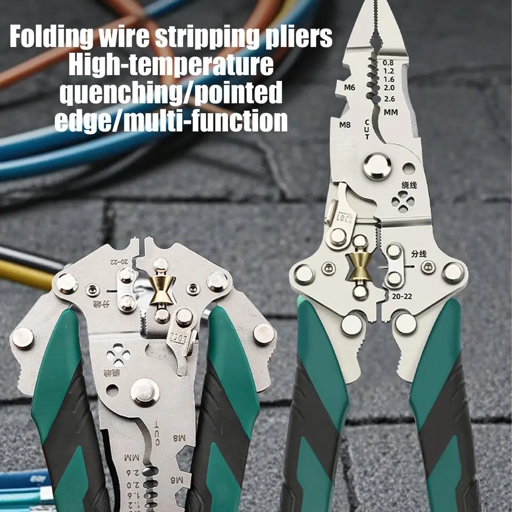 Wire Stripper Foldable Cable Cutter Stripper Pliers Multi-Function Electrician Hand Tool For Wires Cutting Crimping Winding