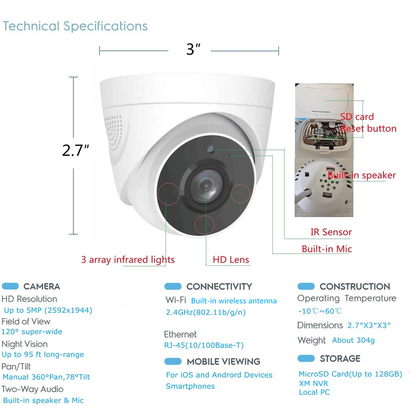 XM Wireless Dome Security Camera Features: