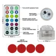 Name: Colorful Adhesive Ambient Light Material: PVC+LED Light Color: RGB LED Chips: 3030 Remote Operate Distance: 10m Battery: 2 x CR2032 ( Included) Light Dimension: 30 x 22mm/1.18*0.8in (D*H) Power Supply Mode: Button Battery Waterproof: IP67 Waterproof Installation Method: Non-marking Glue Paste Application: Universal