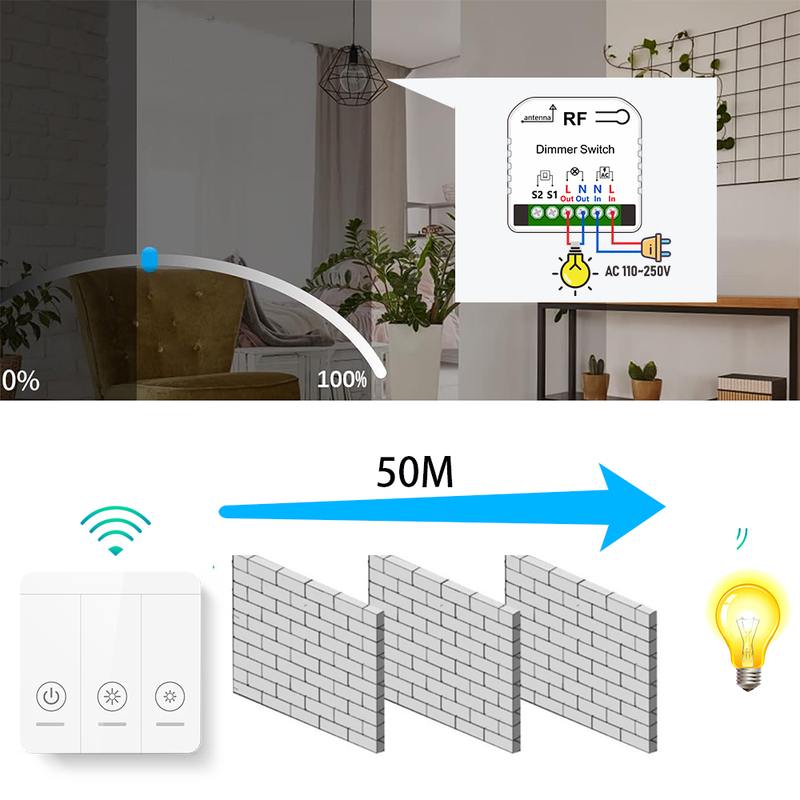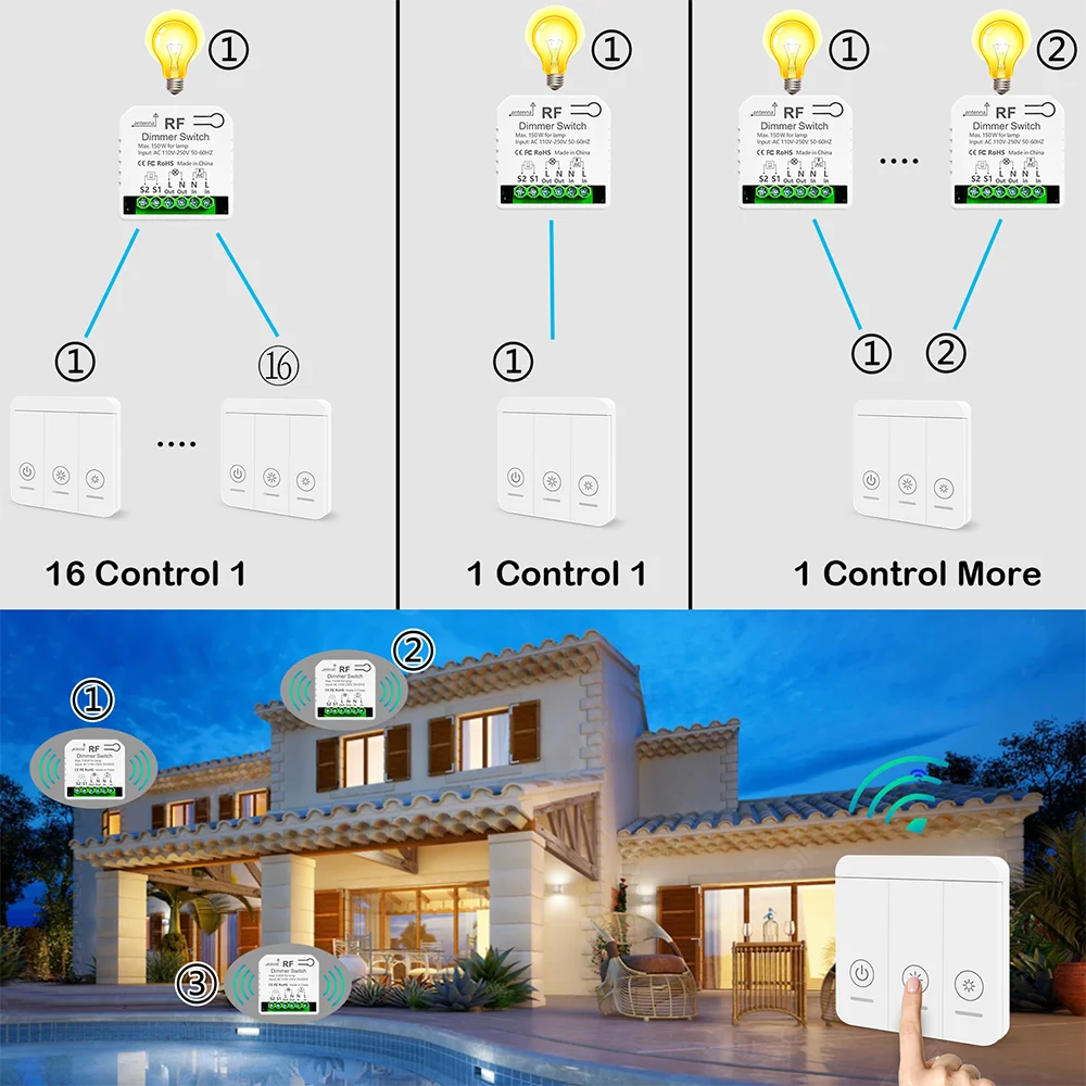 TheDimmer Switch Remote control switch signal reception is stable and one switch can control 20 remotes at the same time.