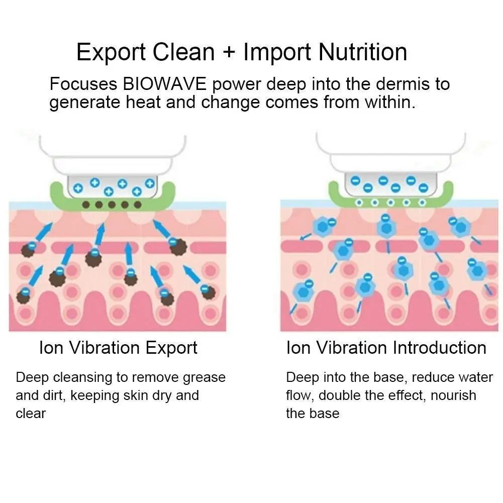 4. Electron flow will move to roller from deep stratum of skin, pulling out the tiny dirt particles and impurities from pores.