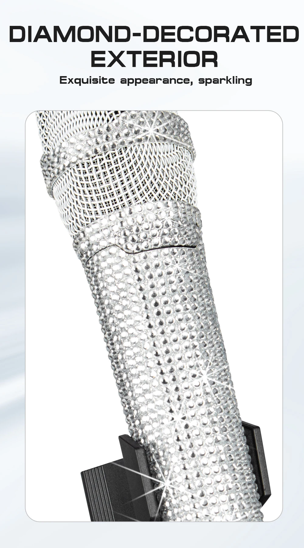 Handpicked by countless singers, Elevate your stage presence with our luxury mic adorned with dazzling crystals that sparkle like real diamonds under any light! this custom diamond-encrusted mic combines luxury with pro-grade audio—perfect for performers craving standout stage presence! it’s a pro singer’s secret weapon to steal the spotlight!