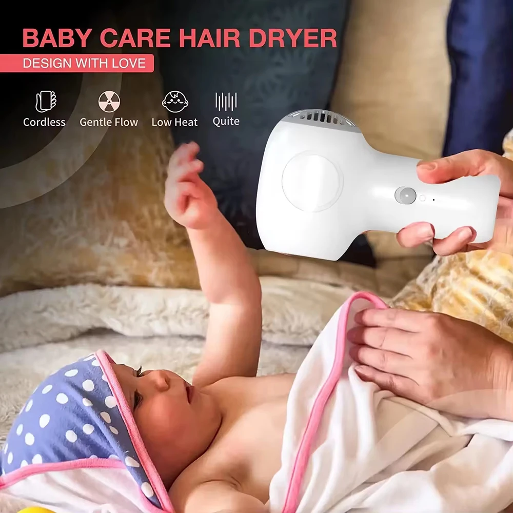 this baby wireless blow dryer makes as low as 60db to keep your baby at peace as well as being safe for their hearing. This baby friendly hair dryer is specially customized for infants, toddlers.