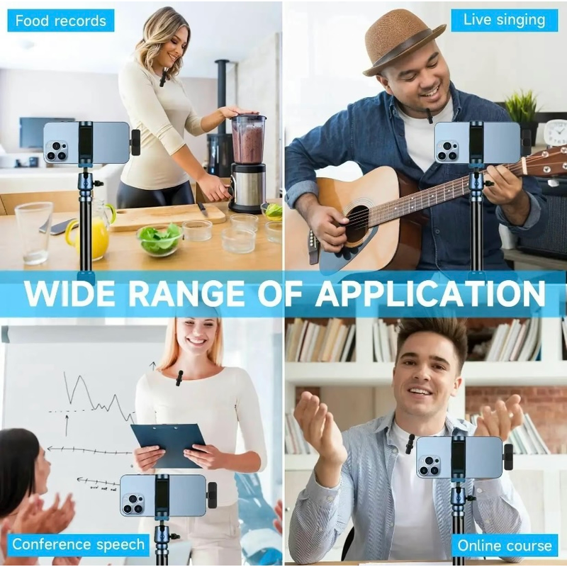 Universal Wireless System: The small lapel microphone is free of wire. You can hold it by your hand or clip it on your shirt. It enables to cover 50 ft for signal, which helps you get rid of messy wire and clearly record or take videos at a further distance indoors or outdoors. Without being surrounded by the wire, this mini mic makes it very convenient for influencers to make audio or video recordings on different social media platforms like Youtube, Tiktok.