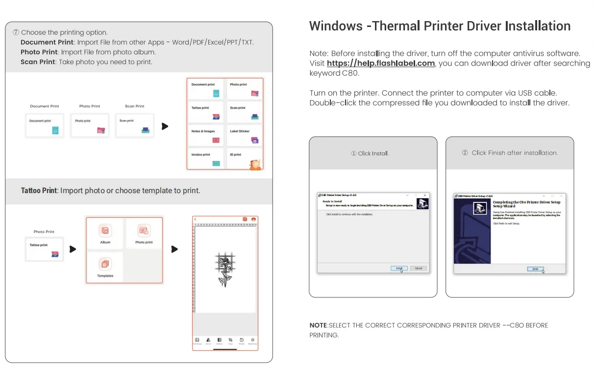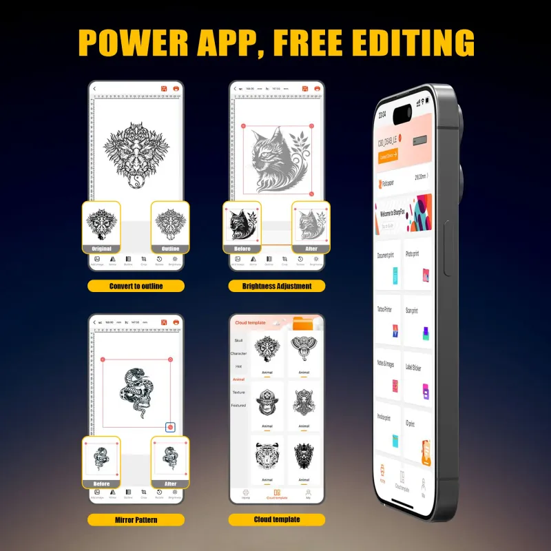 Wireless Portable 8-Inch Thermal Tattoo Printer Includes Transfer Sheets - for Smartphones, PCs, Home, Travel, Office & Creative