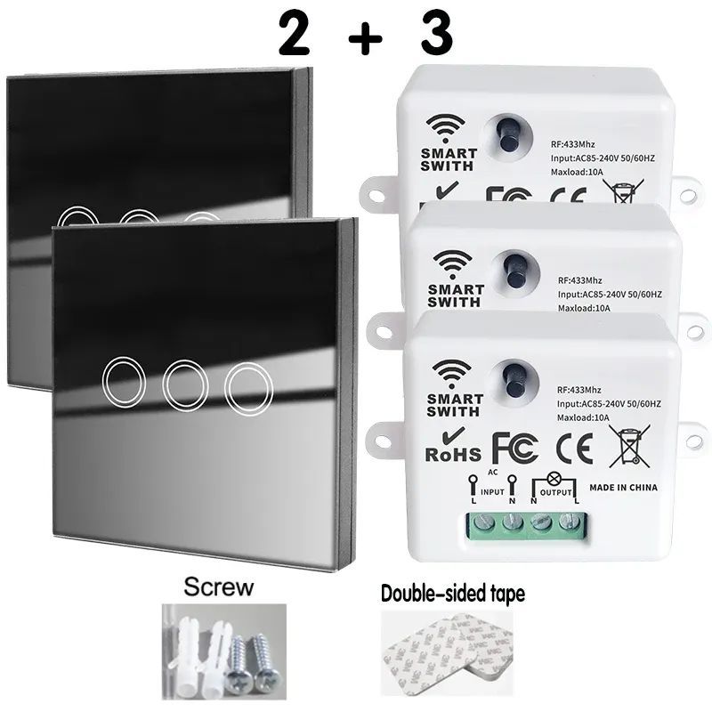 Wireless Smart Light Switch Witch Remote Control 433Mhz Wall Panel Touch Switch Mini Relay Receiver 220V Home Led Light Lamp Fan
