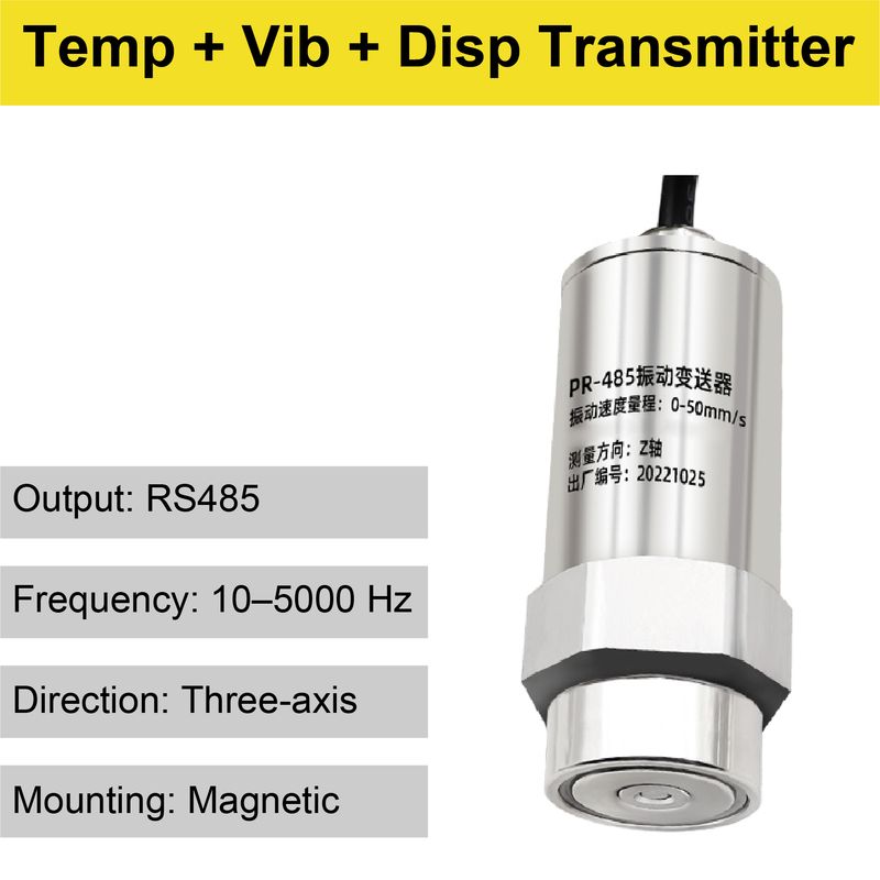 A1: Single-axis models measure vibration and temperature; three-axis models measure vibration, displacement, and temperature across X, Y, and Z axes.