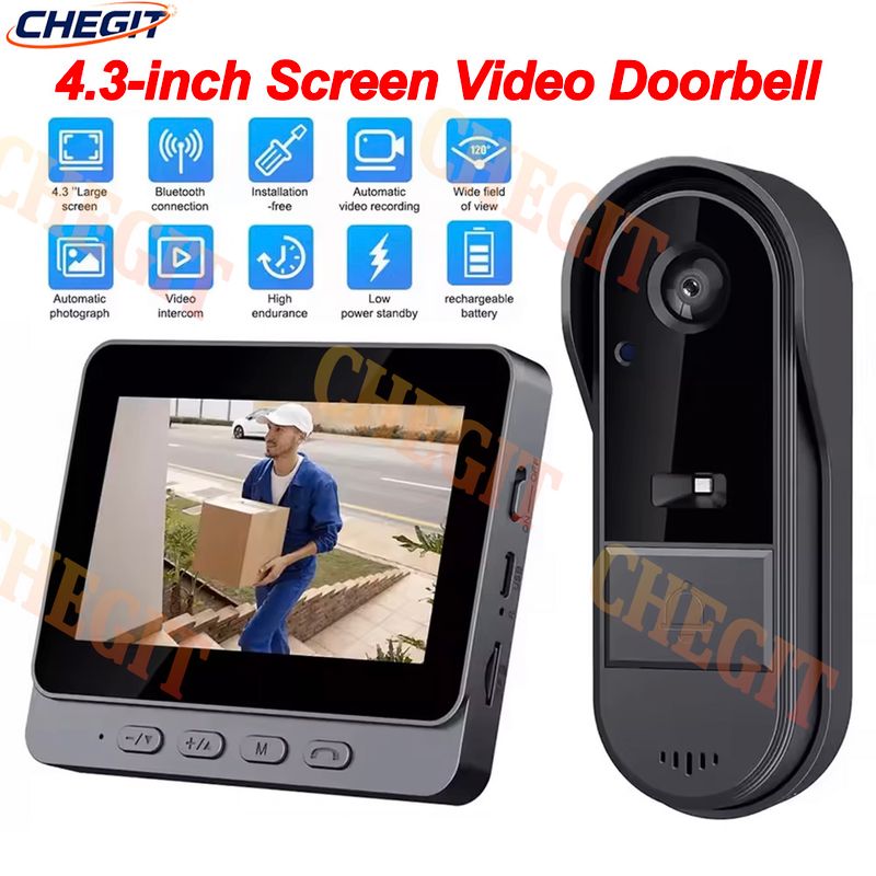 Wireless Wifi Doorbell Camera HD 1080P Intercom Video Doorbell Waterproof 4.3in IPS Screen Door Bell Home Security By Bell