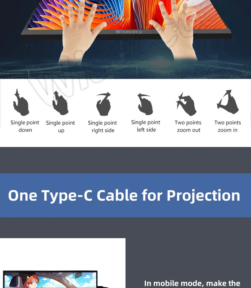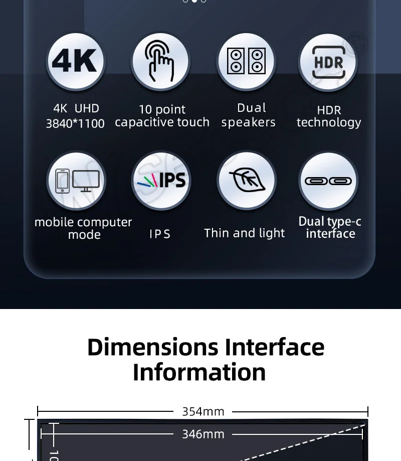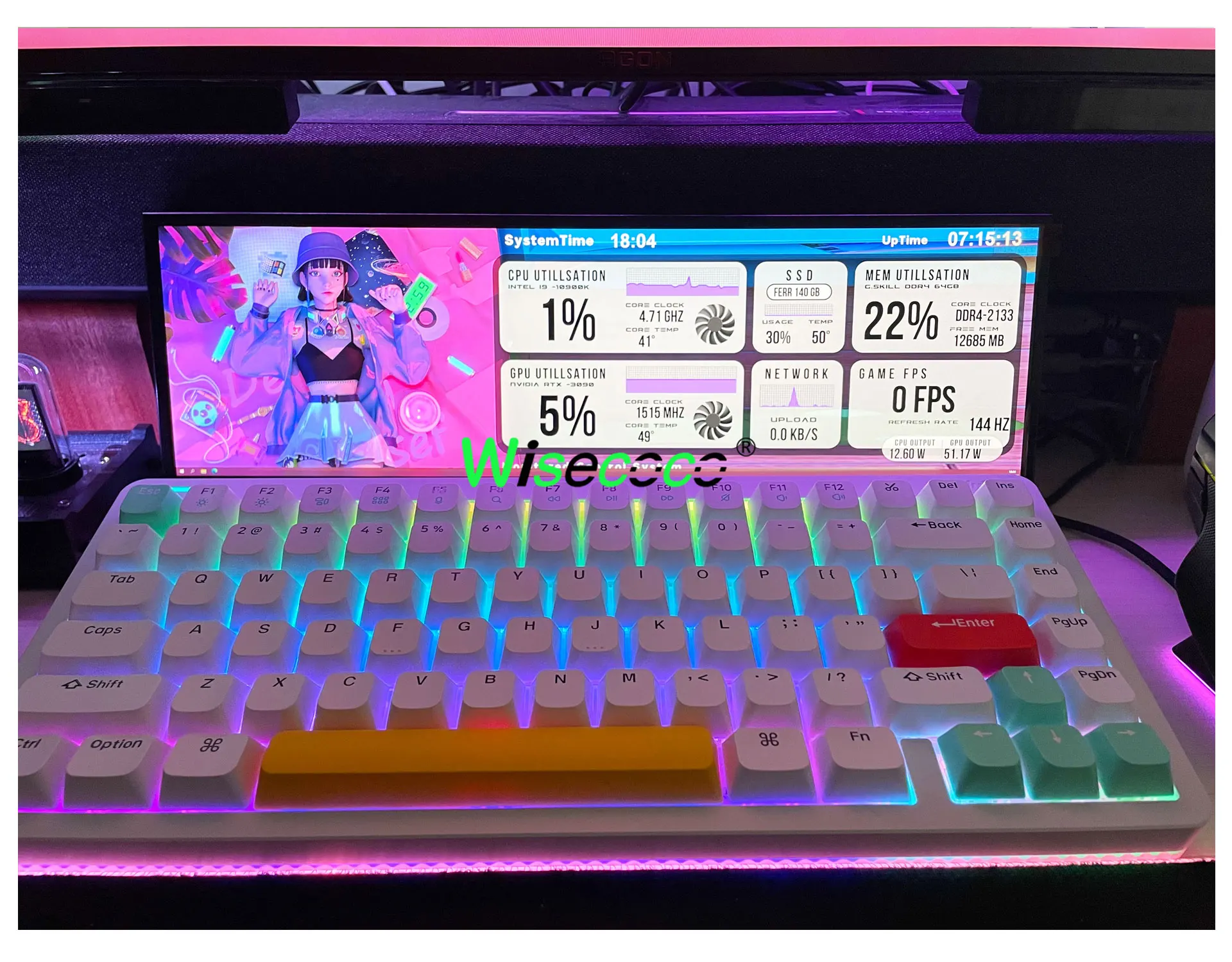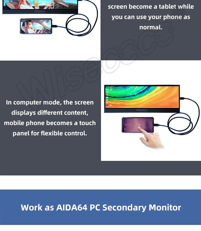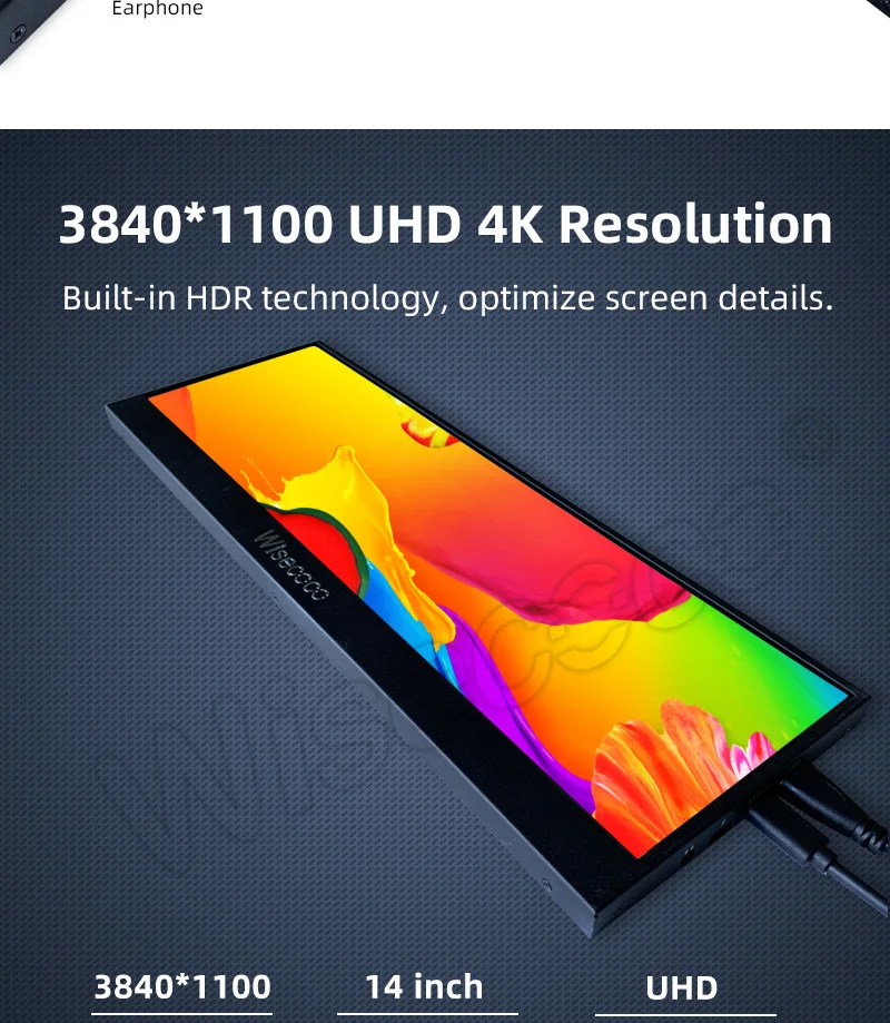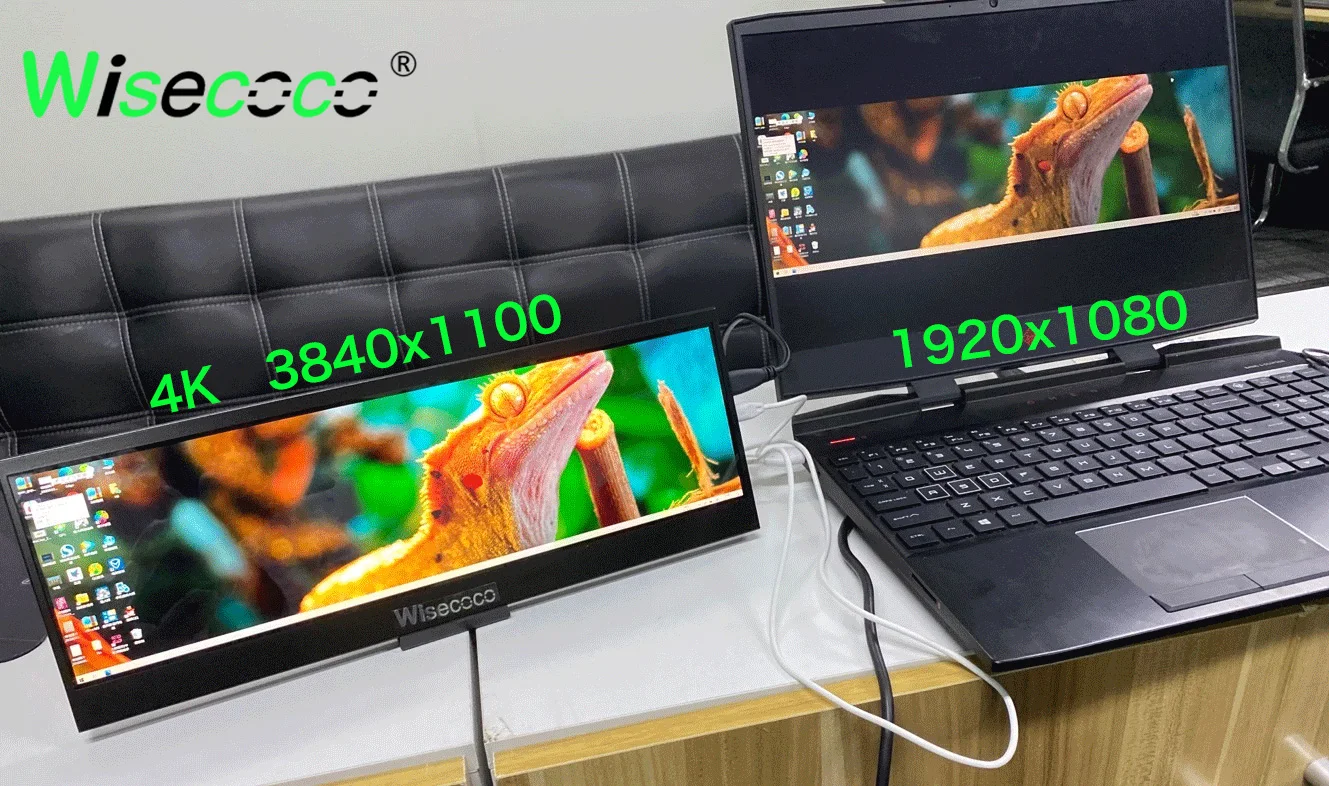 Wisecoco 14 Inch 3840x1100 4K Stretched Bar Touchscreen Potable Monitor Ultrawide Sub Screen Second Display USB-C Port Monitor