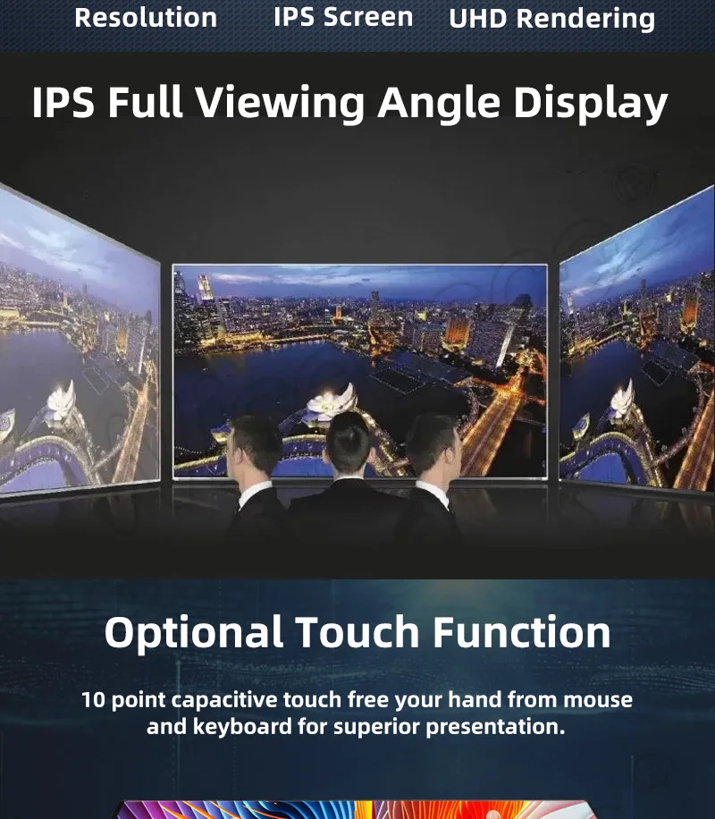 4K LCD screen + driver board+ USB plug&play capacitive touch screen.