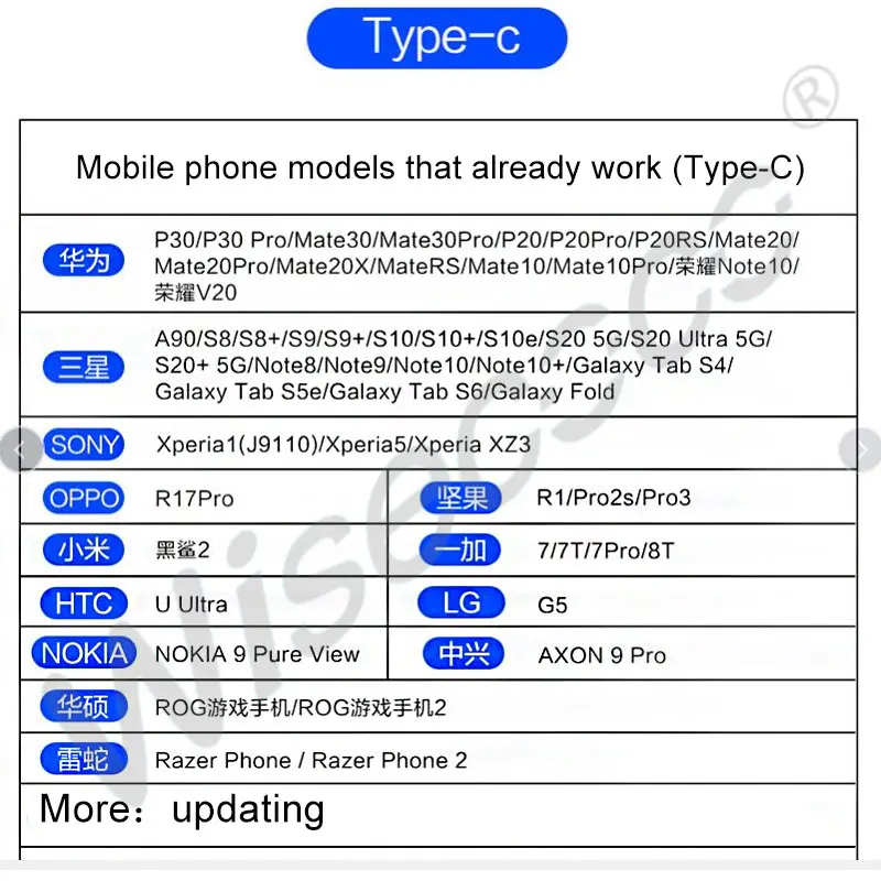 The Type-C interface supports some Android phones with Type-C protocol as signal output.