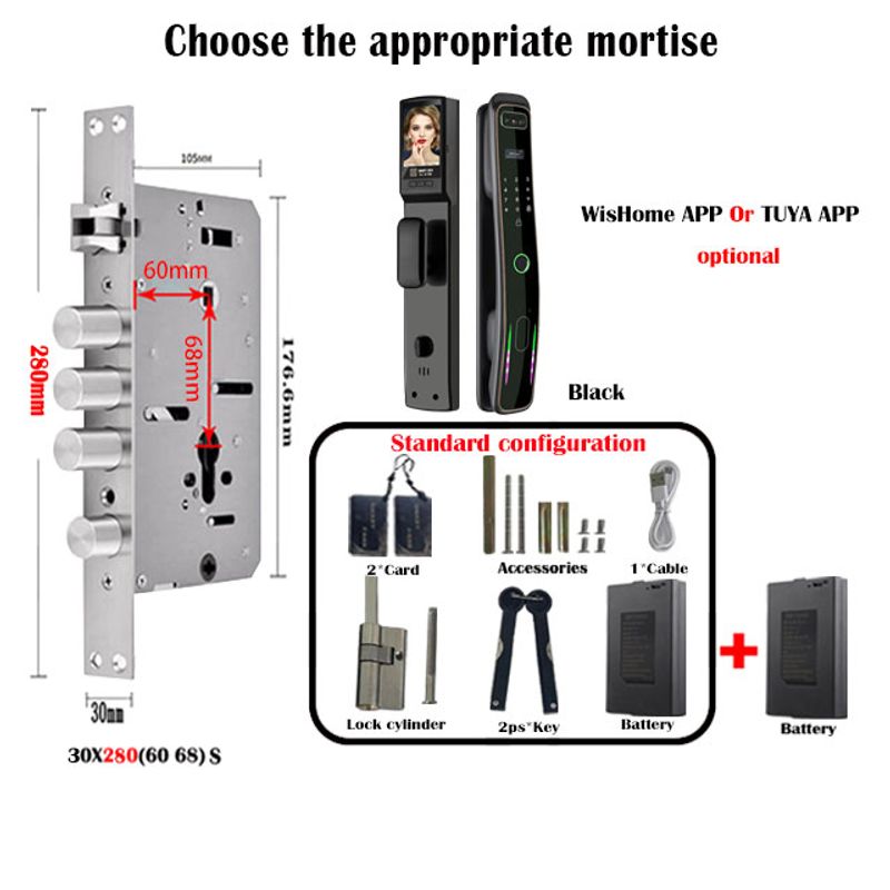 WISHome APP or Tuya App 3D Face Recognition smart Door Lock Unlock Digital Smart Lock Fingerprint Key Card Nfc Phone Unlock Lock