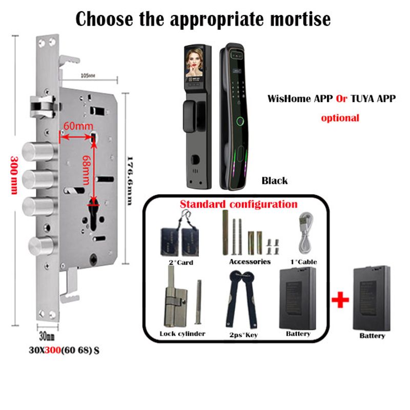 WISHome APP or Tuya App 3D Face Recognition smart Door Lock Unlock Digital Smart Lock Fingerprint Key Card Nfc Phone Unlock Lock